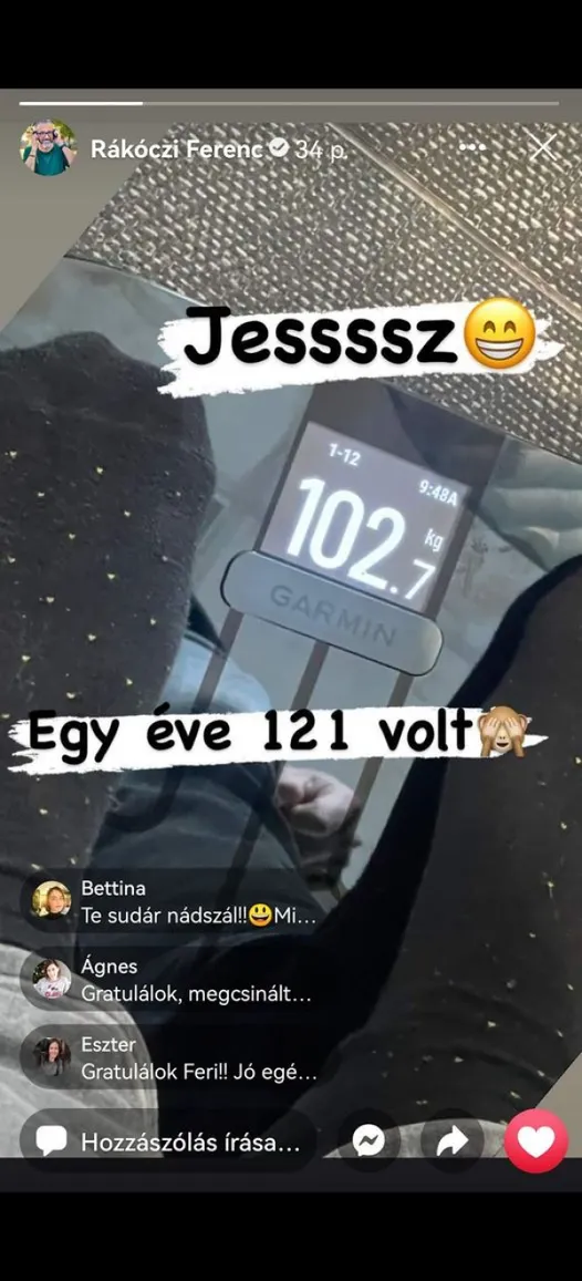 Tavaly év elején jelentette be a Balázsék egyik adásában Rákóczi Feri, hogy diétába kezdett, egyúttal életmódváltásba, mellyel az általános jobb közérzet és természetesen a fogyás volt a célja. Nos, úgy tűnik, Feri egy ritka példa arra, hogy milyen, amikor nem adjuk fel... Nagyjából egy év elteltével, csütörtök reggel ismét a mérlegre állították, és az egészen más eredményre számító Sebestyén Balázs szava is elállt a mérlegen látott számtól. Feri később az Instagram-sztorijában is elbüszkélkedett a fogyásával.