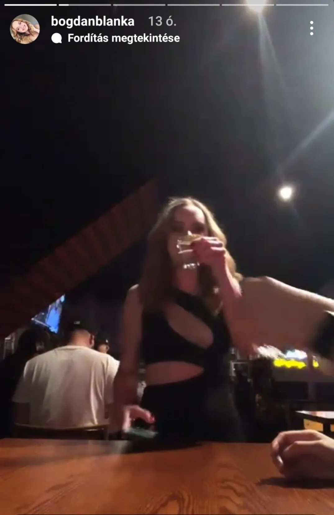 Az elmúlt hetekben történt bejelentkezések alkalmával gyakran mutatta meg, mit iszik és milyen fergeteges hangulatú bulikkal zárja az estéket. Legutóbb Blanka tükörszelfit készített magáról. Itt egy fekete miniruhában látható, ami a mélyen dekoltált fazonja miatt nem bíz sokat a fantáziára. A szórakozóhelyen pedig egy baki következtében véletlenül saját magát vette fel, amint legurít néhány tequilát.