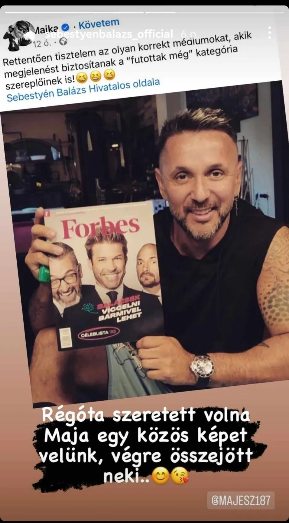 A valódi címzett - Balázs - nagyon is vette a poént: a 24 óráig elérhető Instagram-Story-jában megosztotta Majka posztját és ezt a megjegyzést fűzte hozzá: