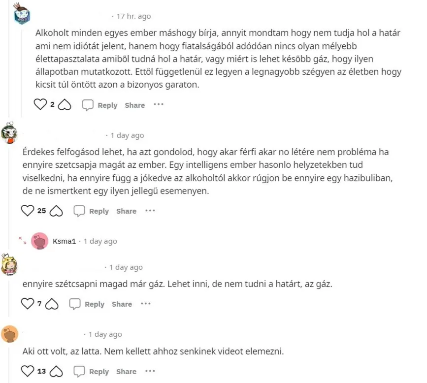 "Kovács Gyopár a valóságban: a tatabányai ValMar koncerten a világáról nem tudott. Dőlt, borult. Egyszer konkrétan mint egy zsák eldőlt a Milán csaja mögé. A videón is látszik a biztonsági őr mögött. 1.06.23-nál például, amikor kidőlt full készen. Mindezt Milán egész családja (anyuka, apuka stb) előtt! Nekem az a véleményem, hogy legyen már annyi tartása egy nőnek, hogy nem csapja így szét magát a szülők társaságában! Annak, aki megkérdőjelezte, hogy ott voltak a szülők. Az apuka meg a színpadon is fenn volt. Az anyuka szinte folyamatosan ott állt a biztonsági őr mögött" – írta a felvételt megosztó felhasználó, de ez persze egyáltalán nem jelenti azt, hogy igaza van és azt sem, hogy tényleg Gyopárról készült a nem túl éles videó.