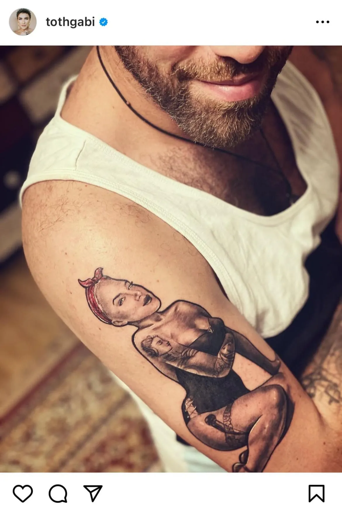 A sztárséf szerelmek csúcspontján varratta a felkarjára az énekesnőt. Ám miután a héten bejelentették, hogy válnak, Gábor valószínűleg nem akarja majd megtartani a méretes mesterművet a karján. Akármennyire is hálás Gabinak azért, hogy szült neki egy gyönyörű kislányt.