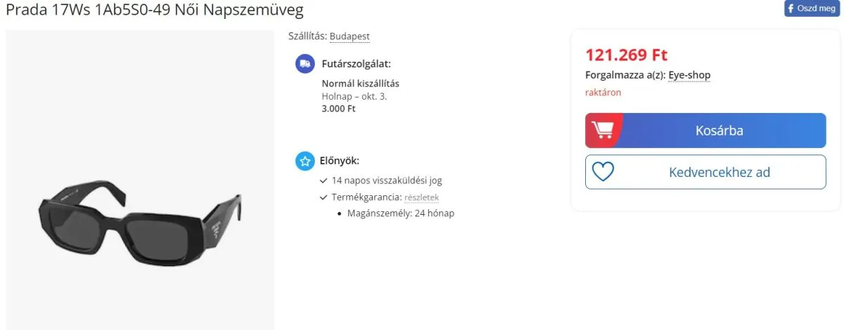 Jolly a napokban ismét egy divat tematikájú poszttal jelentkezett, a legújabb szerzeménye egy Prada márkájú napszemüveg. A divatos kiegészítő ára a hazai internetes áruházak oldalain 121.269 forint, de ha szerencsés az ember, megkaphatja egy pár ezer forinttal olcsóbban is, ha lecsap egy akcióra.
