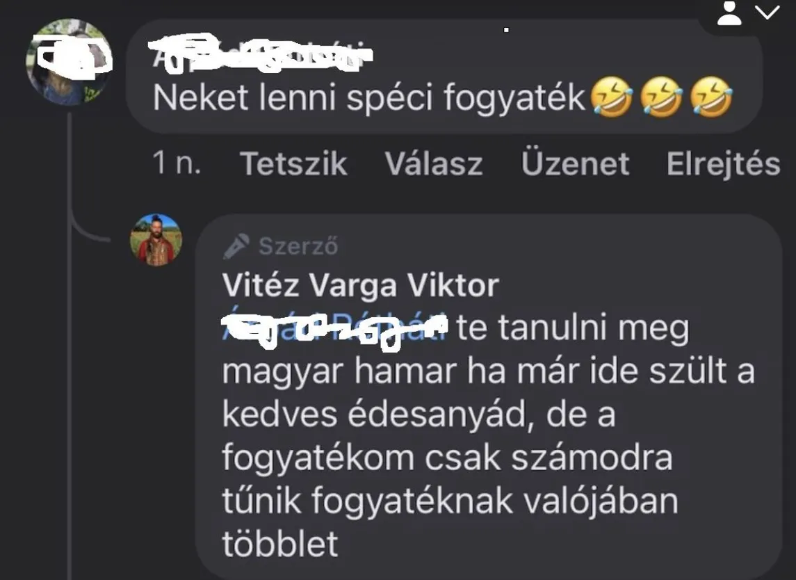 Majd jött a következő példánya a fent említett sajátos „fajnak”, aki egyenesen úgy érezte, hogy kommentjét meg kell spékelnie némi írásban is jelentkező akcentussal. Varga Viktor meg is kérte, hogy ha lehet, tanulja meg ékes anyanyelvünket, ha már...
