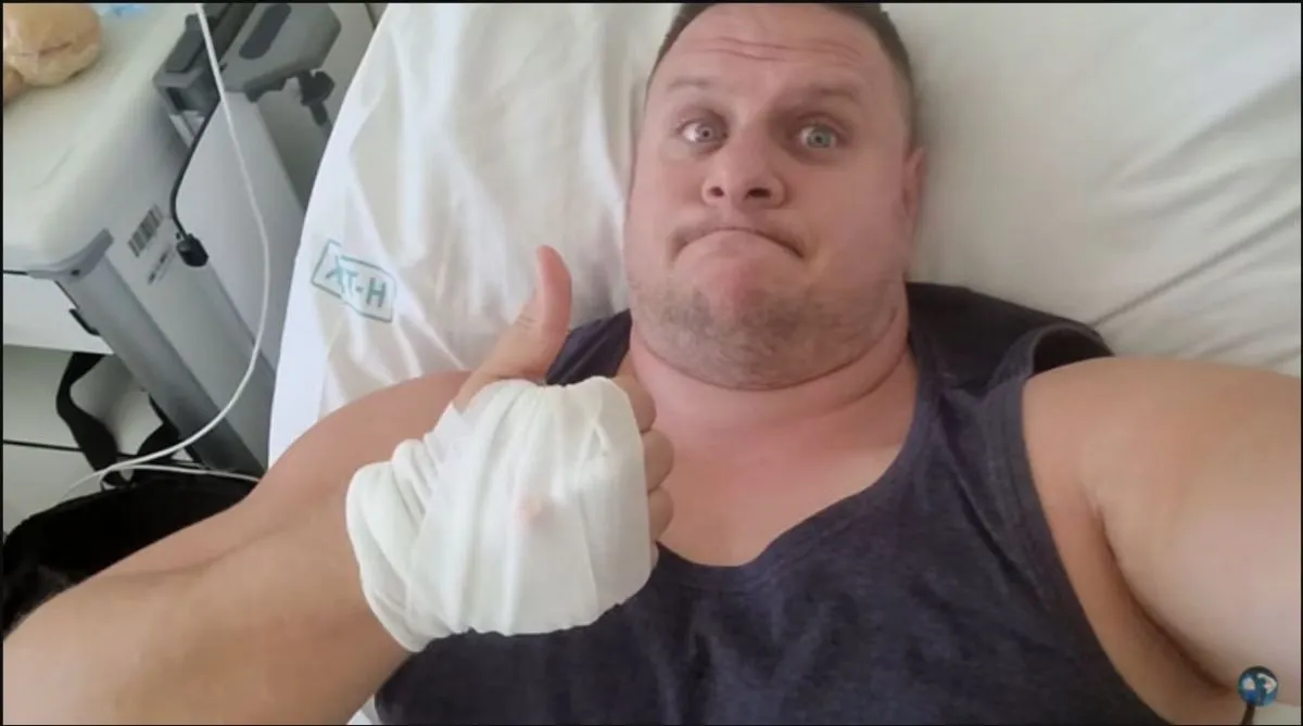 „Magamnál voltam egész végig a műtét alatt, hasra fordítottak, és végül az elszakadt szalagot összevarrták" – mesélte a videójában Miklós mosolyogva. Az erőember letesztelte a kórházi kosztot is, mellyel maximálisan elégedett volt.
