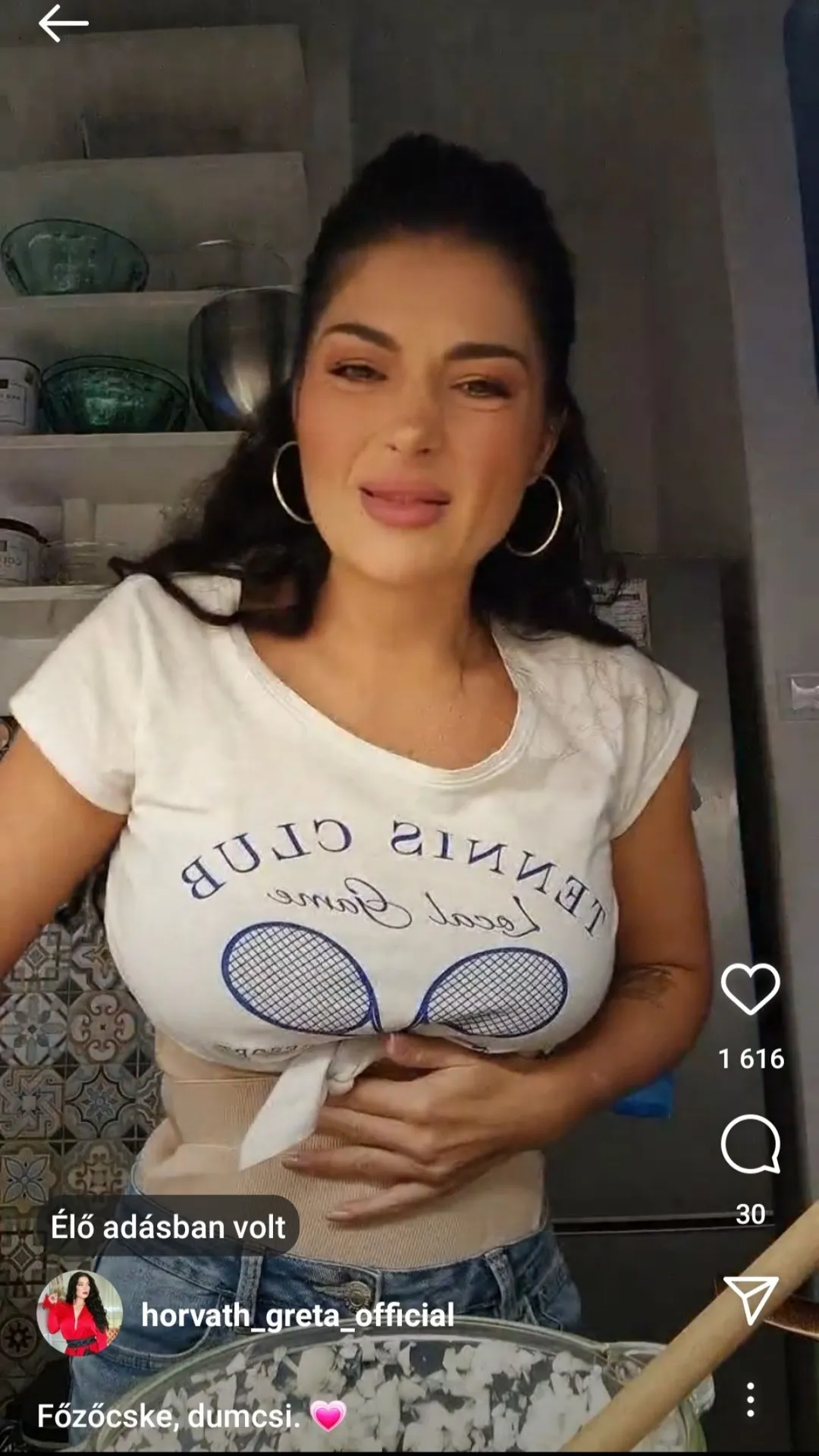 Péntek este elérkezettnek látta az időt arra, hogy hosszú idő után fakanalat ragadjon. Élő bejelentkezést indított és úgy gondolta, ételkészítés közben beszélget a rajongóival. Tette mindezt speciális haskötőben, amelyet az operáció utáni 4 hétben kötelező viselni, hogy a gyógyulási folyamat a megfelelő ütemben és mértékben történjen. Gréta azonban egyre jobban érzi magát, már a varratszedés is megtörtént és láthatta a végeredményt. Talán ezért is érezte úgy, hogy nem okoz gondot, ha másfél órán keresztül beszél a rajongóihoz, miközben a konyhában tüsténkedik.