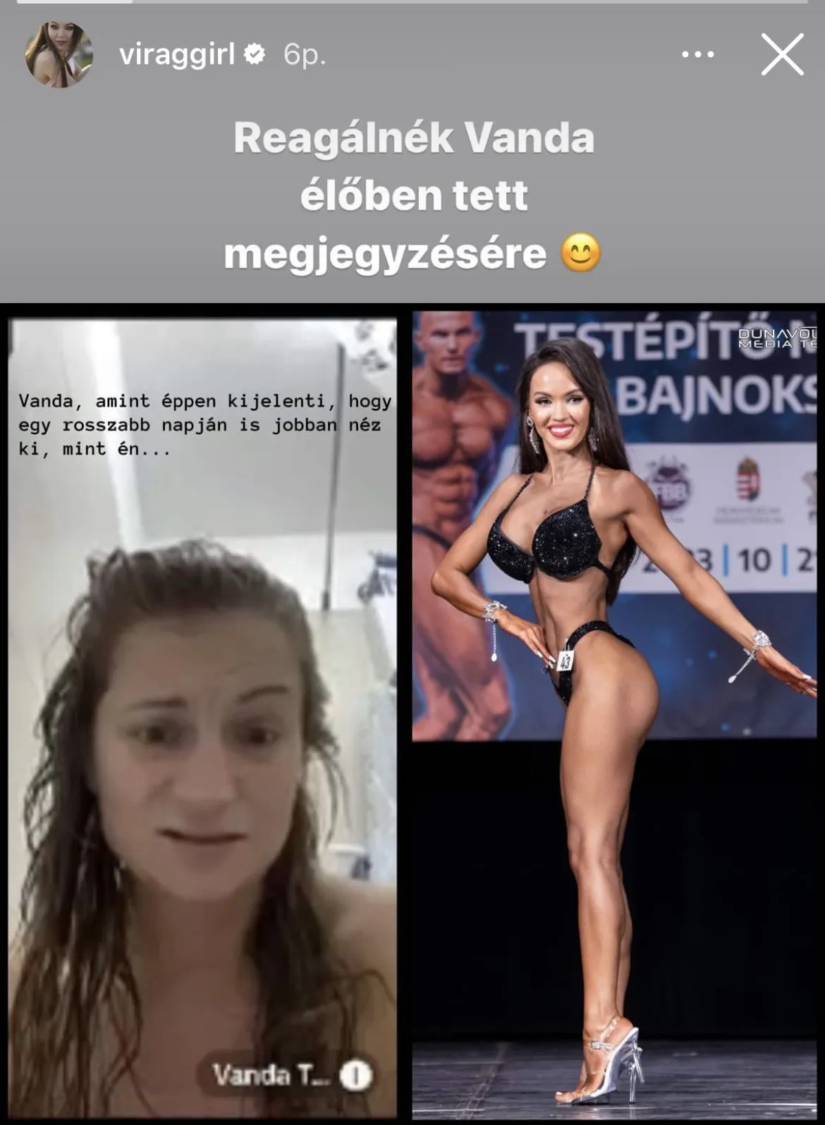 Virág bár nem látta Betti és Vanda élő bejelentkezését, de eljutottak hozzá a neki címzett szavak. A külsejét érintő kijelentésekre egy Instagram posztban reagált és nem is kívánta tovább gördíteni a dolgot.