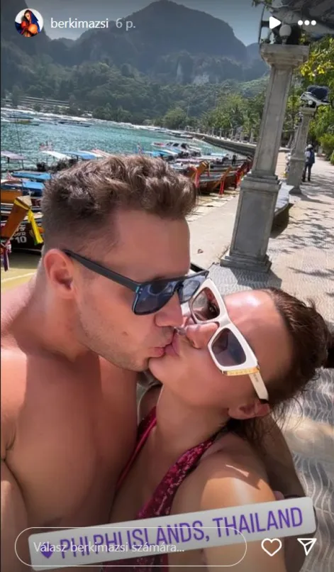 Az influenszer most épp Thaiföld a festői tengerpartjain ejtőzik a szerelmével. Berki Mazsiék most először készítettek a nyilvánosság számára olyan fotót, ahol egymást csókolják.