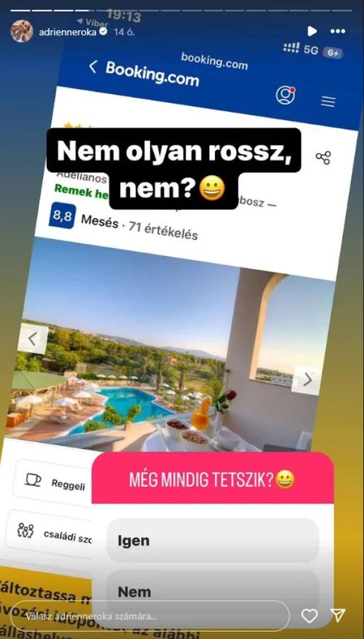 Kellemetlen nyaralásról számolt be Kabát Péter párja, Róka Adrienne. Egy, az interneten 8,8-as osztályzattal minősített szállodáról mutatott valós képeket az Instagram-oldalán, amelyek nem igazán feleltek meg a hirdetésben fellelhető fotókkal.