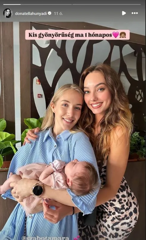 A Dancing With the Stars óta Hunya Donatellára már nem csupán egy kislányként gondolunk, aki Kiszel Tünde árnyékában kuksol. A műsorral ugyanis önállósodott és megmutatta ennek az országnak, hogy nagyon is sokra hivatott. Donatella azonban nem adott hírt mostanában arról, hogy mi újság a férfiak terén. Most viszont egy fiatal barátnőjével találkozott, aki immáron anyuka. Egy gyönyörű kicsi lányt tart karjai között, így Donatella végre kisbabát ringathat - derült ki a sztorijából.