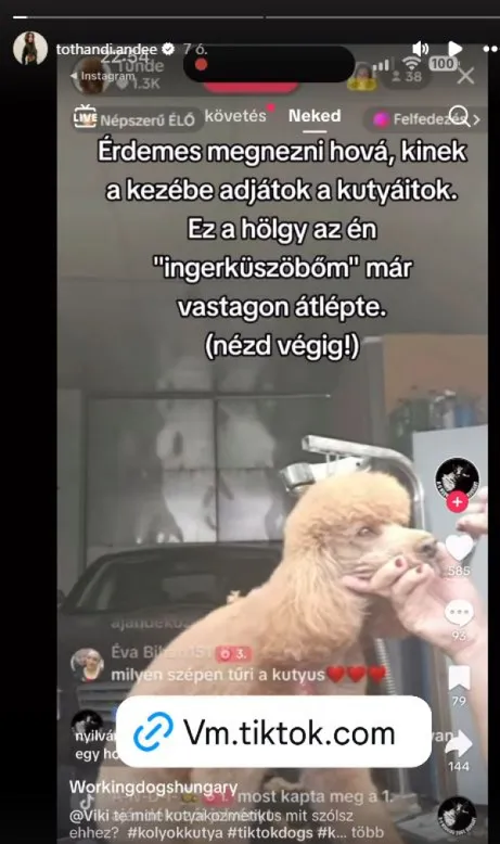 Aki nyomon követi Tóth Andi életét, az tudja, hogy nagyon szereti az állatokat. A kutyák különösen közel állnak a szívéhez, jelenleg pedig kutyája, Bailey a mindene, a szerelme. Kikerült egy videó, amelyen egy hazai kutyakozmetikus nagyon durván nyírja a kiskutyát, és közben káromkodik. Tóth Andi ezen teljesen felháborodott: