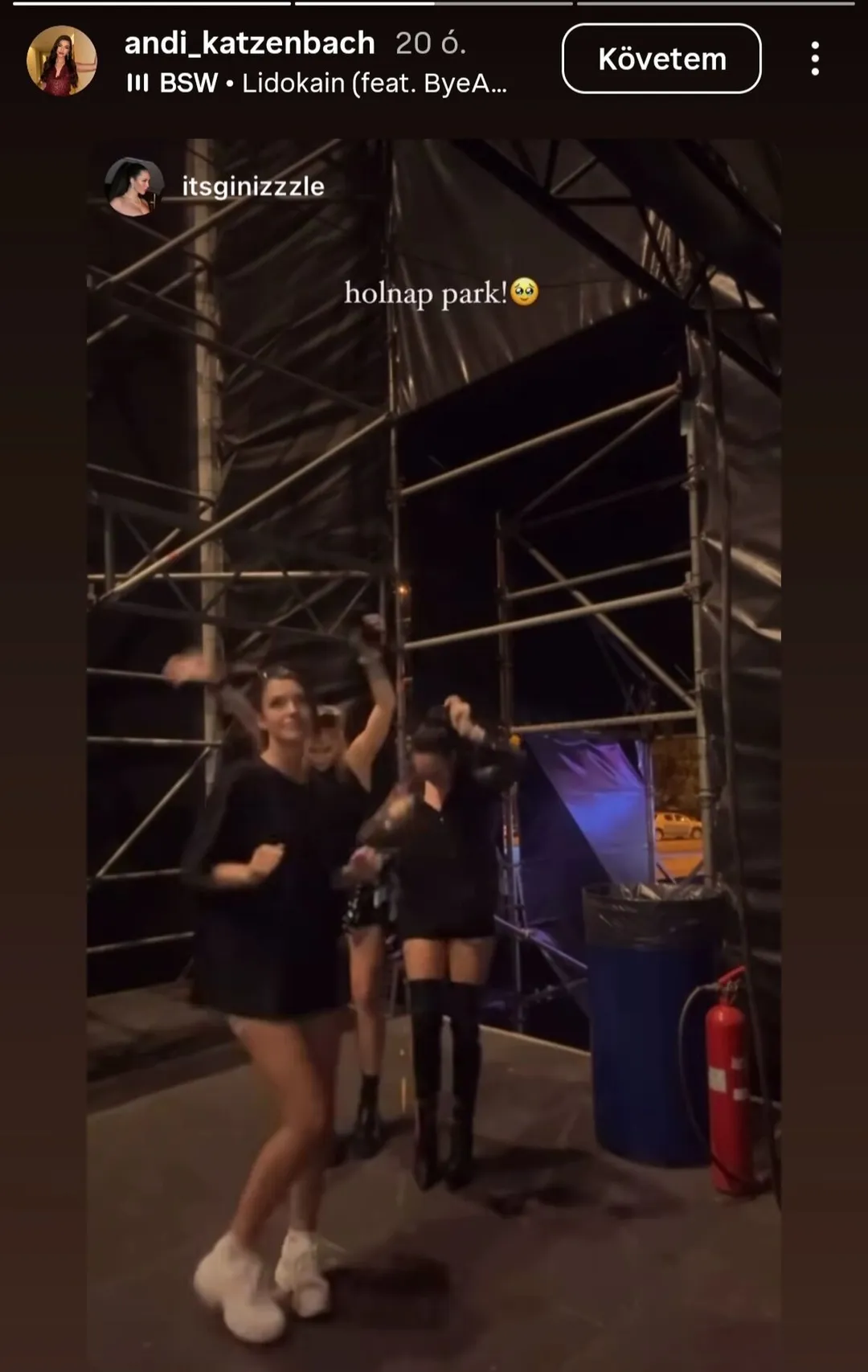 Az elmúlt napokban Katzenach Andrea megint megmutatta, milyen vidám és laza tud lenni: egy rövid videóban táncolt a Budapest Parkban, a BSW koncert próbáján, amit az Instagram-történetében mutatott meg.