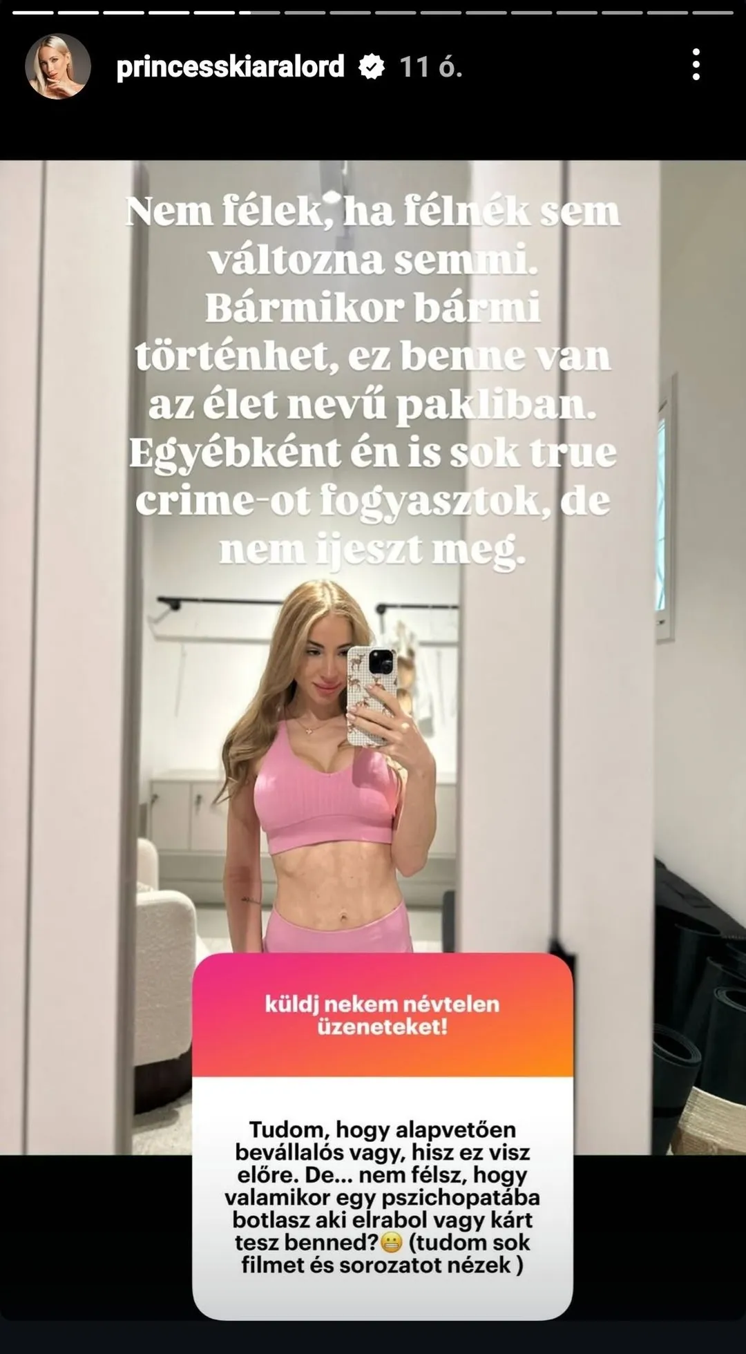 Kiara Lord Instagram-oldalán válaszolt a követői kérdéseire, amelyek között még mindig rendkívül gyakori az olyan jellegű megkeresés, amelyben kávézni hívják el a szőke bombázót. Kiara borzalmasan unalmasnak tartja az ilyen jellegű felkéréseket, ráadásul ennek többször is hangot adott már válaszaiban. Lapunknak adott interjújában elárulta, hogy milyen lenne számára az ideális randi és azt is, milyen típusú férfit tart izgalmasnak.