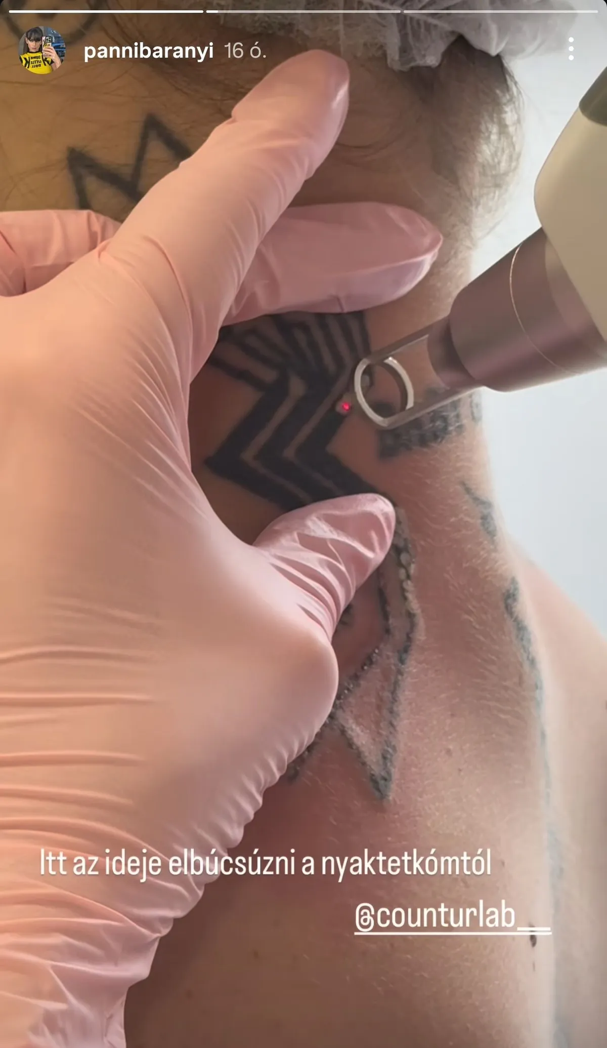 Baranyi Panna Instagramon bejelentkezve árulta el, különleges kezeléseken vesz részt: eltávolíttatja a nyakáról a mintát. Nem kizárt, hogy úgy érzi, a modellszakmában mégis hátrányt jelentenek a tetoválások, különösen egy ilyen látványos helyen.