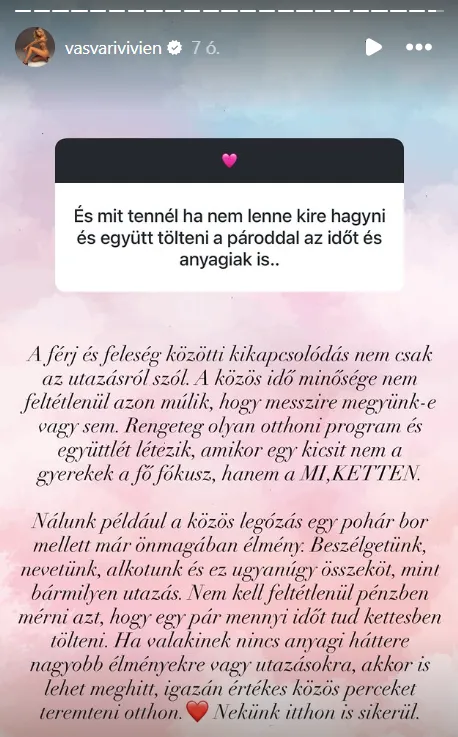 Vivi szerint tehát, ha valakinek nincs meg a kellő anyagi háttere az utazásokhoz, akkor is lehet meghitt, értékes közös perceket megteremteni az otthon környezetében. Hiszen nekik ez otthon is sikerül.