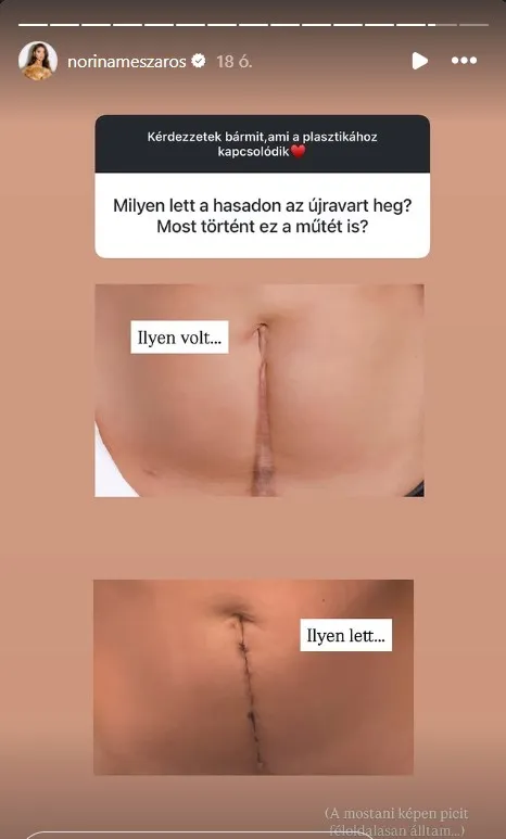Norinának nemcsak a melleit „tették helyre”, de szüléskor a hasán ejtett nagy vágást is „kijavította” a kezelőorvosa, amiről Norina látványos előtte-utána fotót is megosztott.