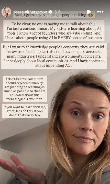 Reese Witherspoon reagált az MI támogatása miatti kritikákra: