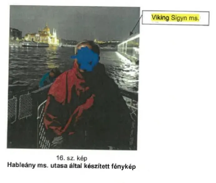 A képen jól látszik a kivilágított Parlament, jobbról pedig a gyorsan közelítő Viking Sigyn szállodahajó, ami néhány másodperc múlva legázolja a Hableányt. A fotó az egyik turista gépéről került elő. A katasztrófában meghalt a Hableány 2 fős magyar személyzete és 26 koreai, mindössze heten élték túl a balesetet. Akik megmenekültek, a Hableány fedélzetéről estek vízbe az ütközés pillanatában – nem tudni, hogy a fotó készítője és az, aki a képen látható, megmenekült-e.