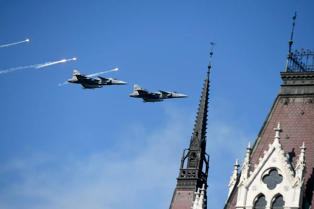Látványos légi bemutatóval kápráztatták el a nézelődőket a Duna fővárosi szakaszánál augusztus 20-án. A parádén a levegőben volt a Magyar Honvédség összes rendszeresített repülésre alkalmas gépe. Vadászgépek, helikopterek és szállítógépek, köztük a nemrég beszerzett Airbus és Falcon szállítógép, de átrepültek a folyó felett a Gripenek is.
