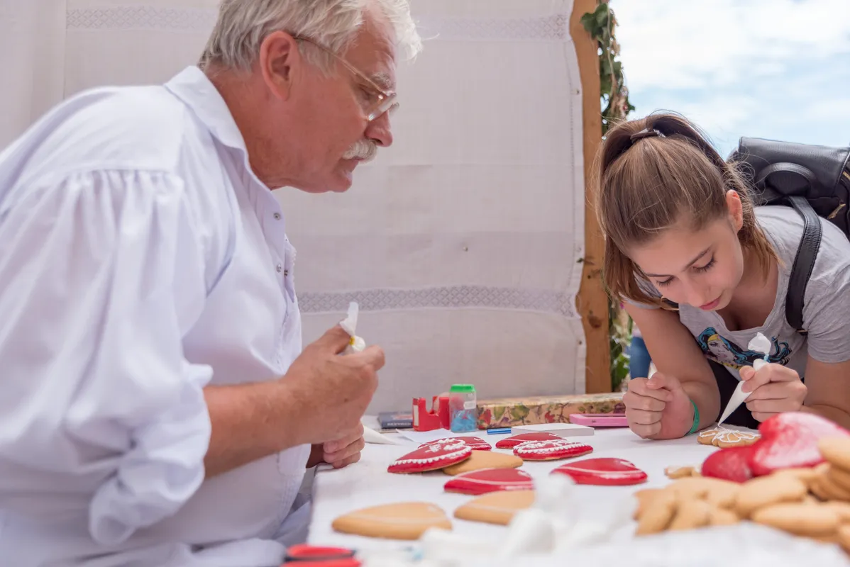Takács Béla mézeskalács készítő mester nem csak bemutatja és árulja a termékeit, hanem lehetőséget is nyújt a látogatóknak a kipróbálásra. A Palócföldi Népi Iparművészek Egyesületének tagja ezüstkoszorús mester, a szakmáját szívesen adja tovább az új generációnak.