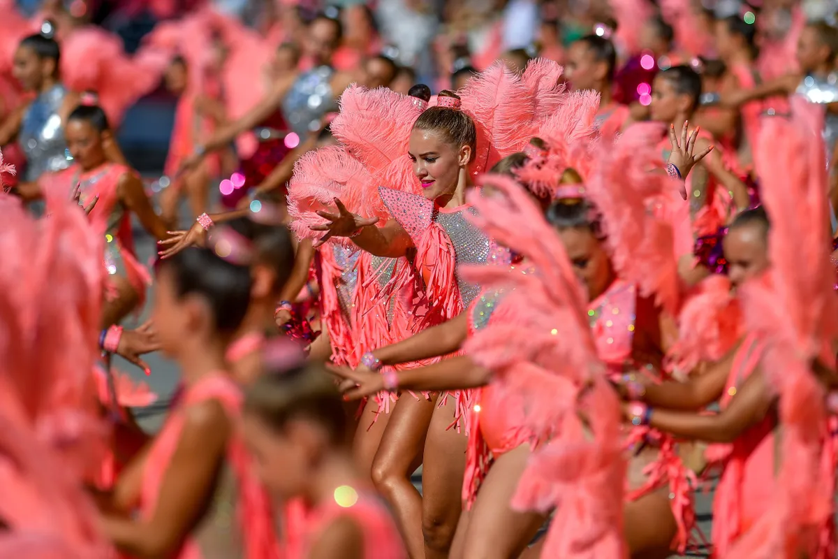 A meneten összesen 18 virágoskocsi gurult végig a mintegy 6 kilométeres útvonalon, a nézőket pedig 10 hazai és 17 külföldi művészeti csoport is szórakoztatta.