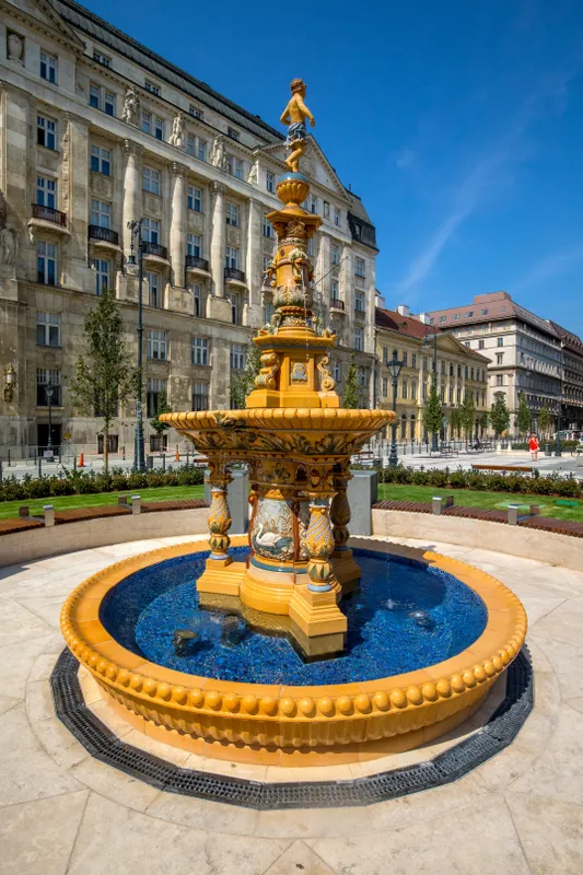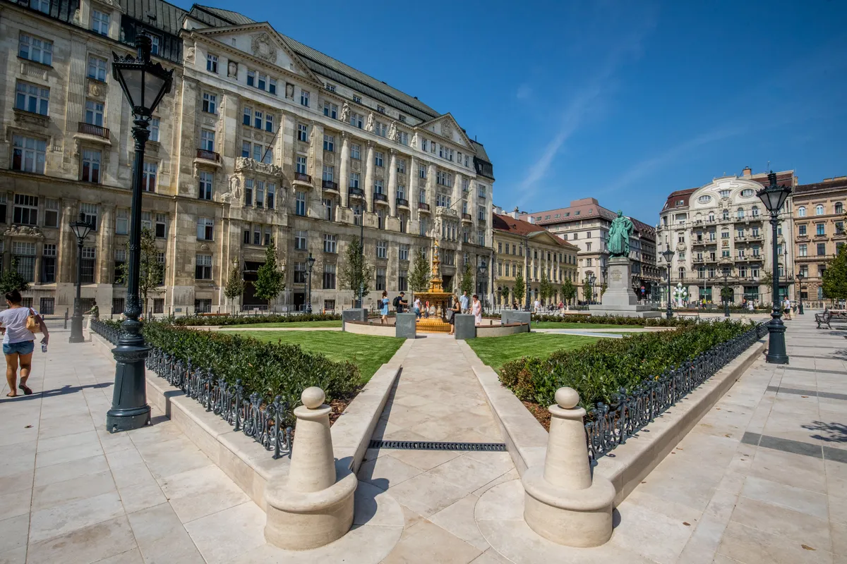 Egy herendi, egy Zsolnay: két díszkút áll a tér két oldalán. Csaknem három évig volt feltúrva, de most végre átadták a felújított József Nádor teret Budapest szívében. A rendezetlen, 80-90-es éveket idéző térből egy modern, minden igénynek megfelelő rendezett parkos tér lett. József nádor szobrán kívül két díszes szökőkút is helyet kapott a felújítás után.