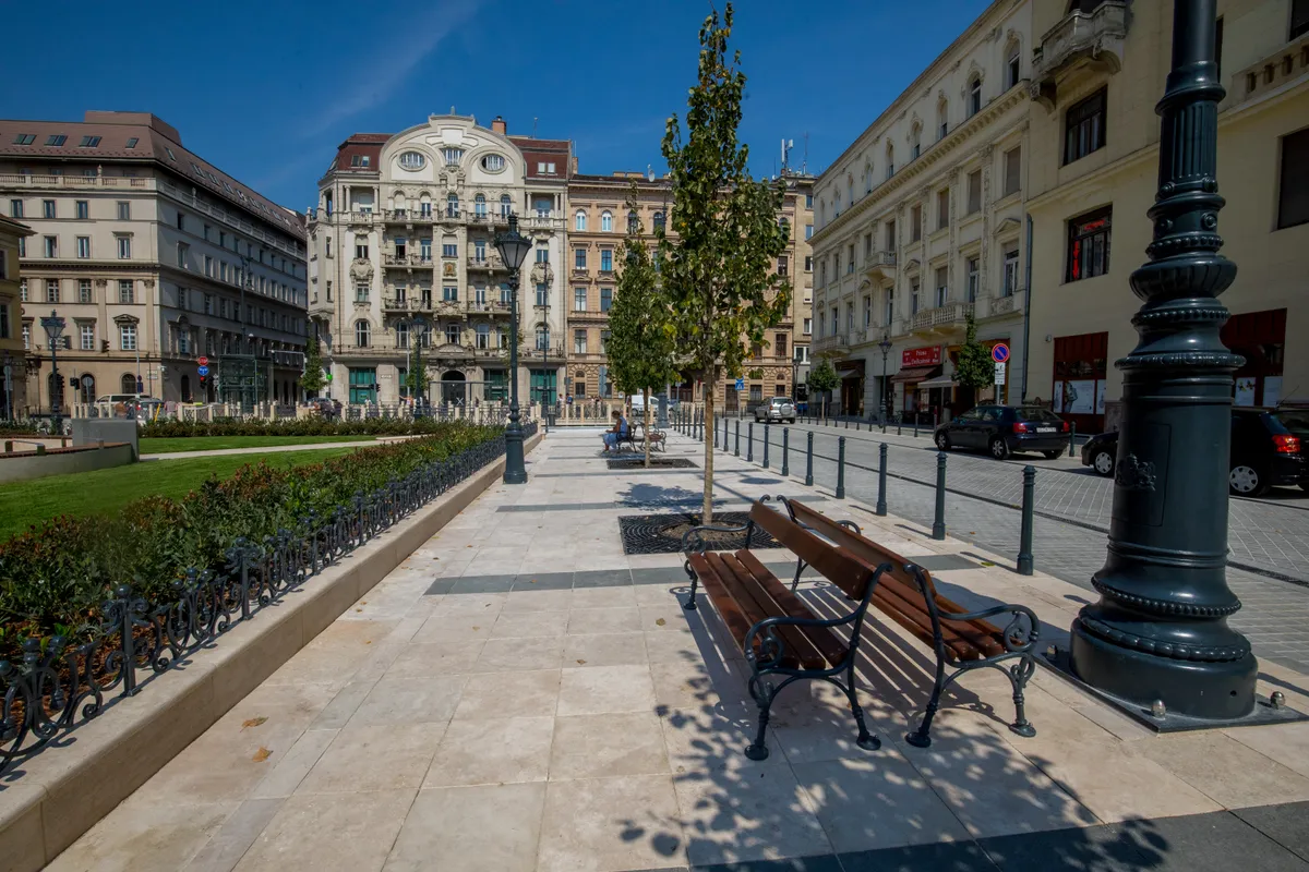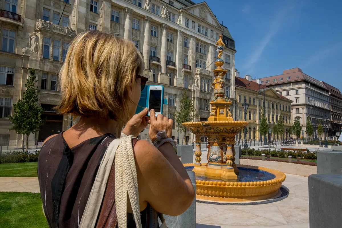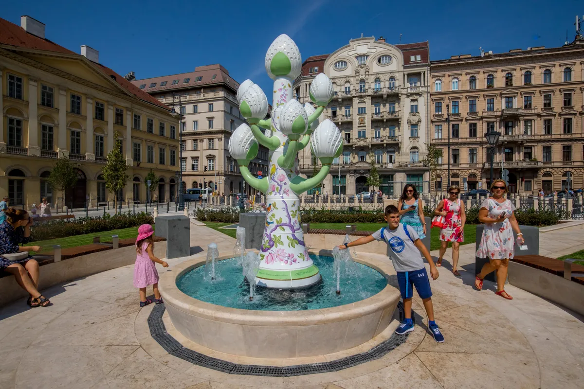Az erre sétáló budapestiek, de még a külföldi turisták is folyamatosan bámészkodnak a teljesen megújult téren.