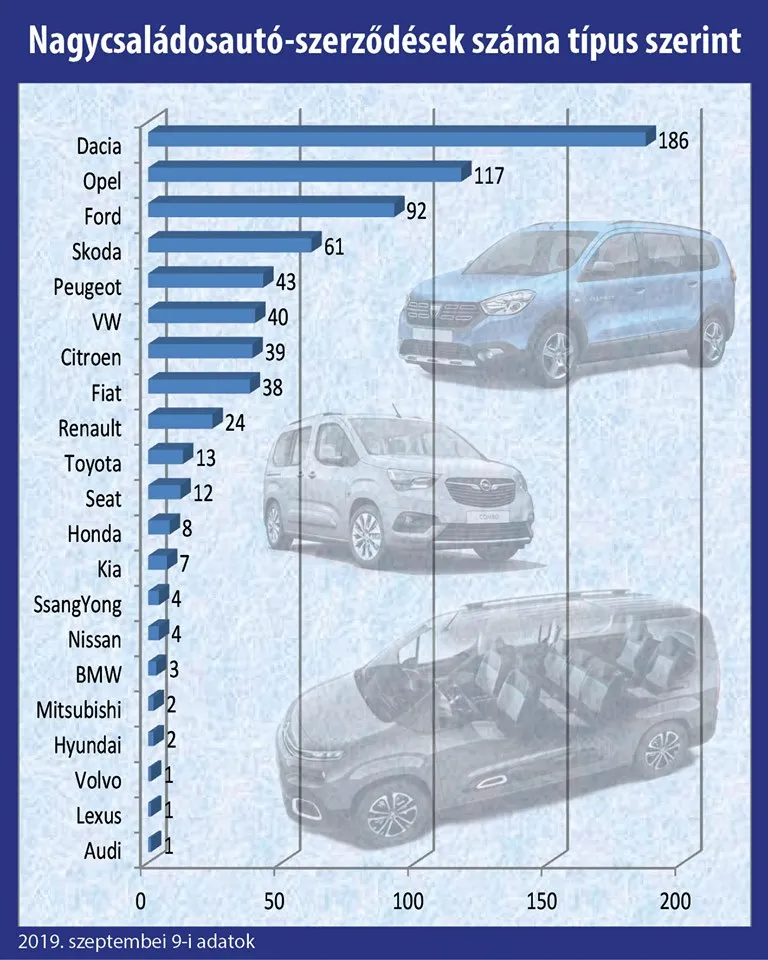 Viccesen úgy is mondhatnánk, hogy eddig 186-szor több Daciát vásároltak a nagycsaládosok július 1-je óta, mint Volvót, vagy Audit, hiszen az utóbbiakból csak 1-1 ilyen szerződést kötöttek eddig, míg Daciából 186-ot... Mindenesetre a statisztika azt mutatja, hogy a kormány programja a kisebb pénzű családoknak jelent hatalmas segítséget. A program bevezetése óta még két hónap sem telt el, de már most látszik, hogy egyrészt rengetegen érdeklődnek a program iránt, másrészt az intézkedéssel főként azok a kisebb pénzű családok járnak jól, akik egyébként nem tudnának kocsit venni.