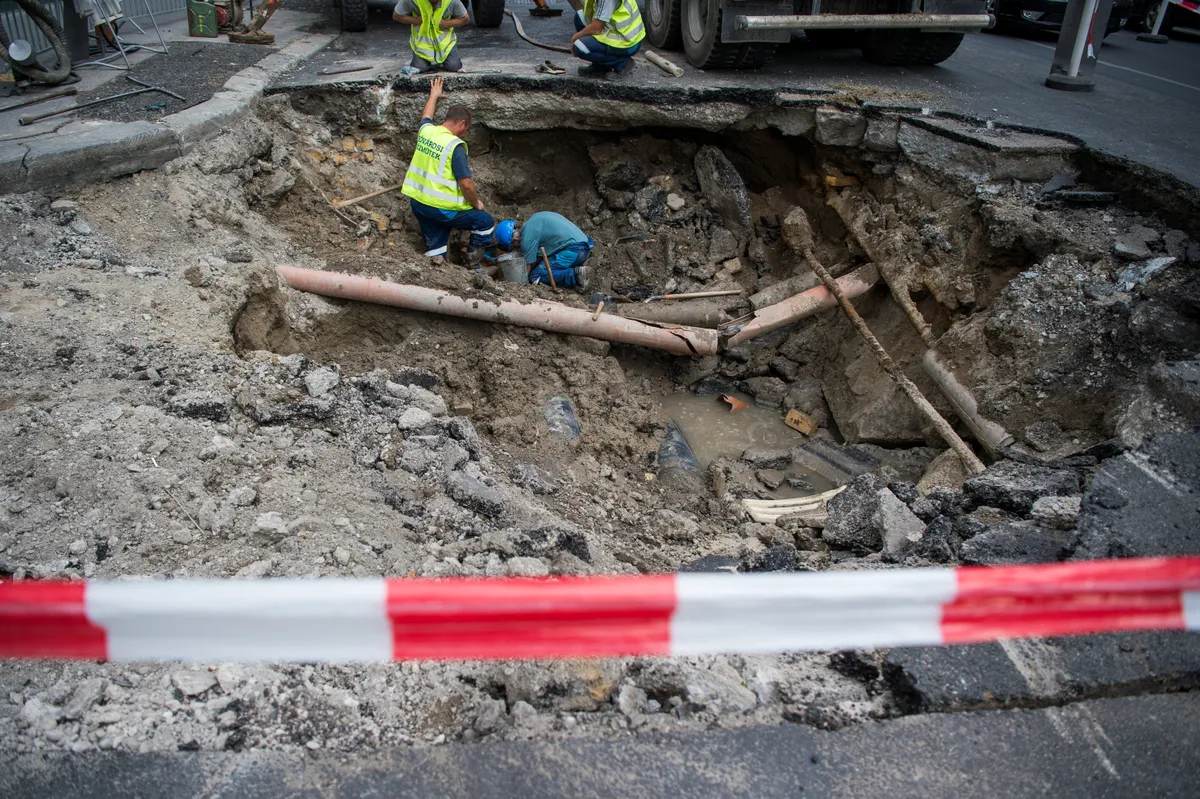 Beszakadt az út Budapest egyik legforgalmasabb részén, a Ferenciek terénél pénteken.