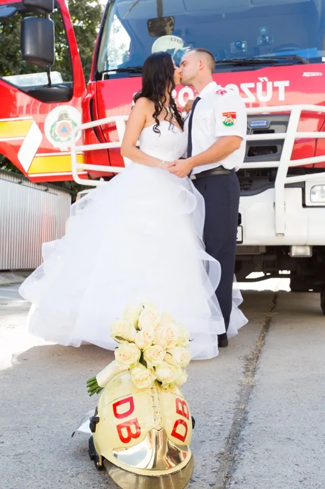 Azoknál, akiknek hivatásuk az életmentés, nagy az összetartás – nemcsak a bajban, az örömben is. Erről árulkodnak azok a fényképek, amik egy tűzoltó- és egy mentős lakodalomról szólnak.