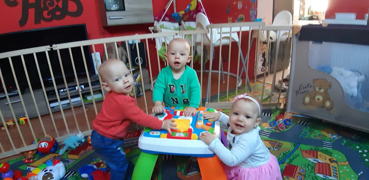 A három baba egészen a 35. hétig kitartott a pocakban, ekkor születtek meg császármetszéssel. Mindegyik makkegészséges, a napokban ünneplik első születésnapjukat.