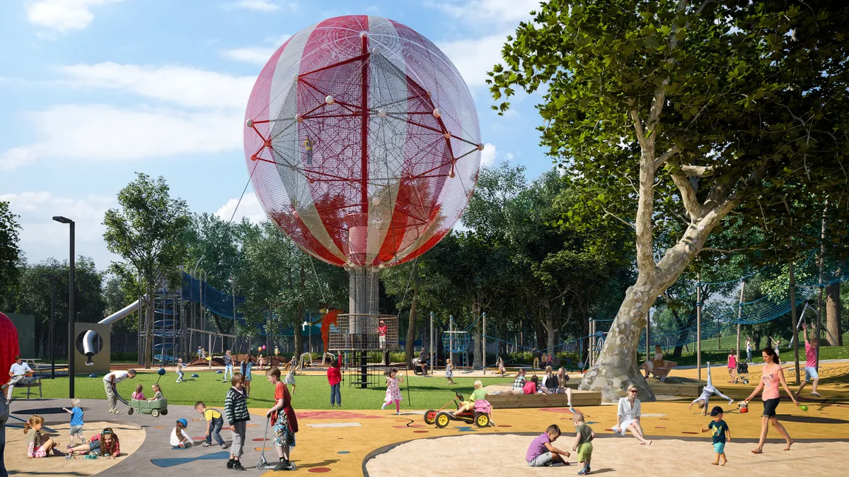 Az idén ősszel megnyíló, családbarát Nagyjátszótér központi eleme egy háromszintes mászóka lesz, amelyet Szinyei Merse Pál Léghajó című festménye inspirált.
