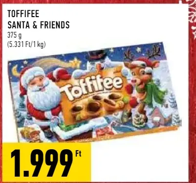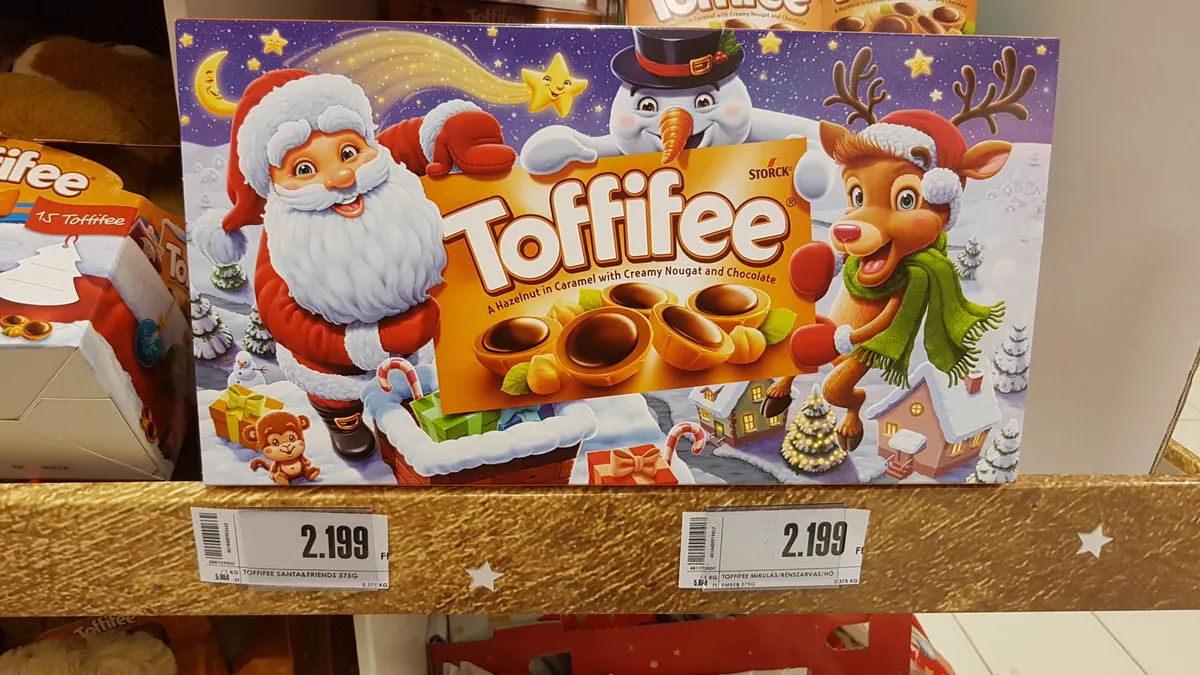 Az ünnepi díszbe öltöztetett, 125 helyett 375 grammos Toffifee is kedvelt csemege a gyerekek körében.