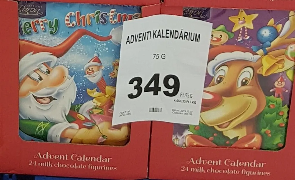 Tavaly 299 forintot kértek a 75 grammos Excelent Baron adventi kalendáriumért a Penny Marketben, idén 349 forint az ára.