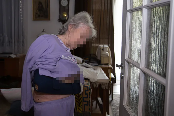 Az idős nőnek olyan erős fájdalmai voltak az esés miatt, hogy képtelen volt egyedül felállni a földről. Később kiderült, eltört a válla.