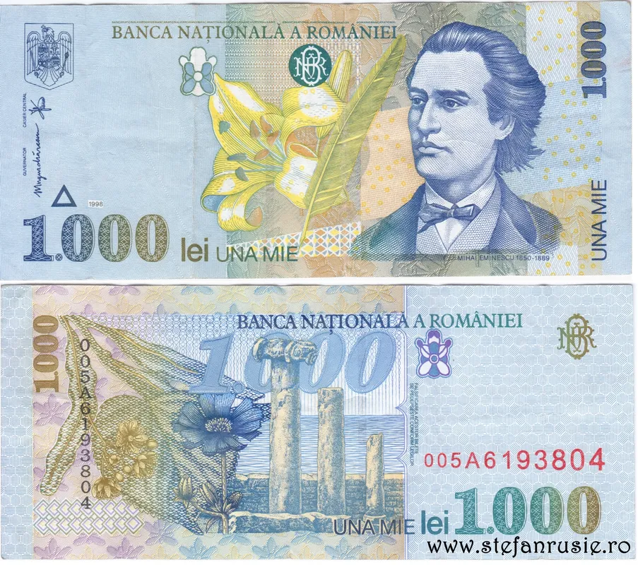 Vízjel, fémszál és ki tudja még hány biztonsági elem igazolja, hogy a csaláshoz használt 1000 lejes valódi. Csakhogy kivonták a forgalomból, miután 2005. július 1-jén „lenullázták” a lejt, azaz négy nullát elvettek a címletek végéről. Így lett többek közt az 500 ezer lejesből 50 lejes, a 100 ezer lejesből 10 lejes. A régi pénzjegyeket már a Román Nemzeti Bank sem váltja be, s a gyűjtőknek sem érnek túl sokat. Egy román aukciós portálon például a csalásnál is használt régi, de szép állapotú 1000 lejest 30 lejért, alig 2000 forintért kínálják.