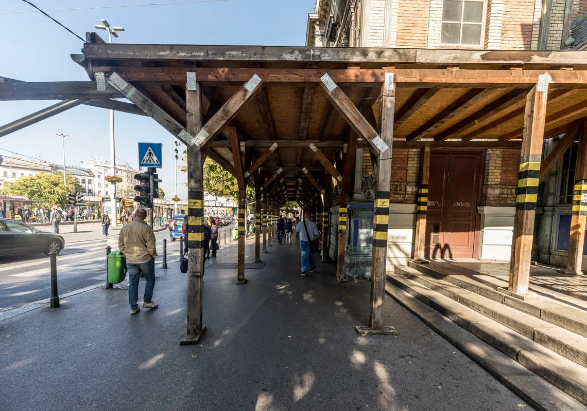 Nem csak a pályaudvaron belül kritikán aluli a helyzet. A csarnok több részén kívül is évek óta állványok alatt sétálnak a gyalogosok.