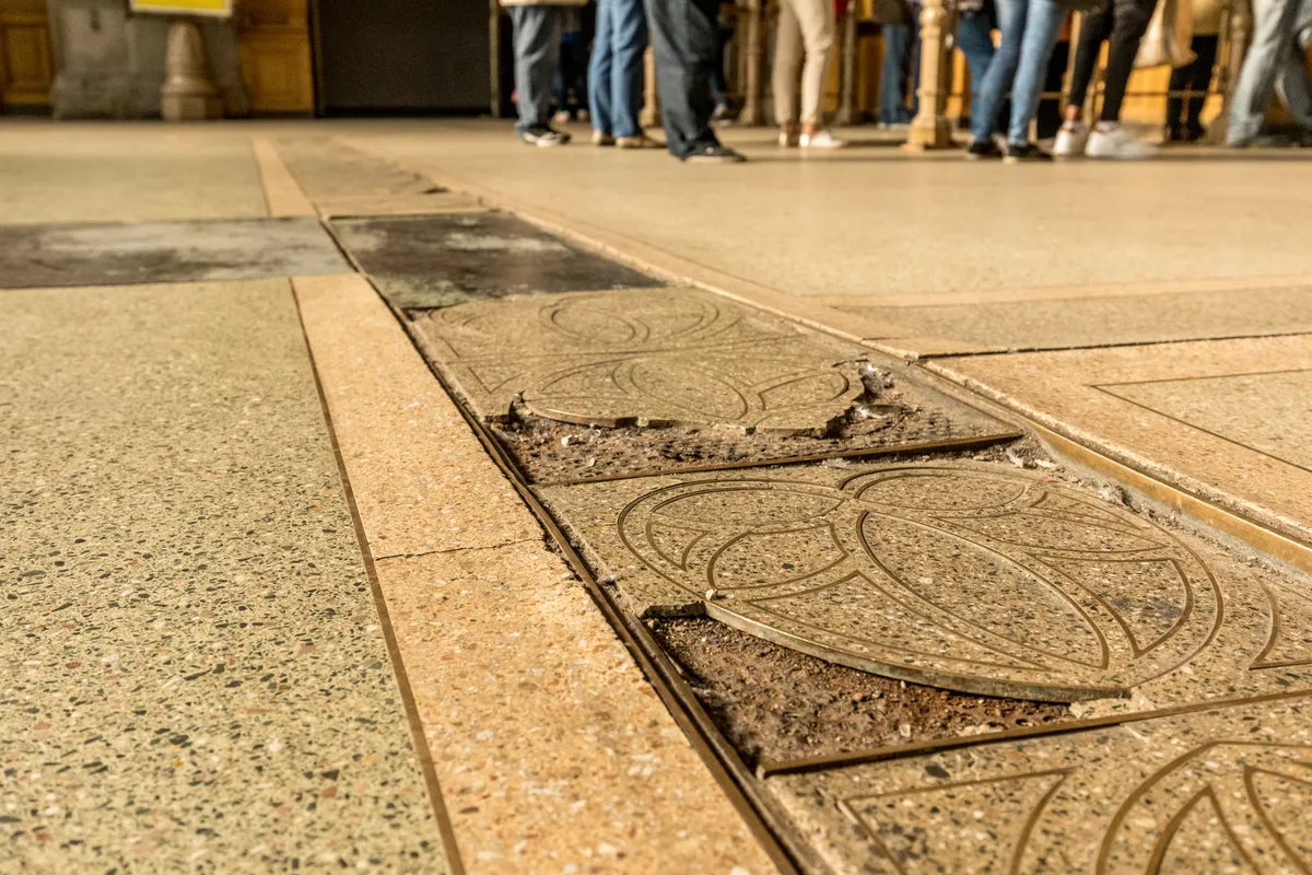 A csarnok végein lévő hatalmas üvegfalat az ígéretek szerint felújítják. Egy ablaktörölgetés már nem elég, pár üveglapot valószínűleg már cserélni kell.