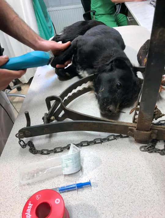 Öt férfi ápolónak és az állatorvosnak fél órájába telt, mire kiszabadították a Coyote névre hallgató egyéves kutyust a rókacsapda fogságából, ami Nagykálló külterületén csapódott a nyakára.
