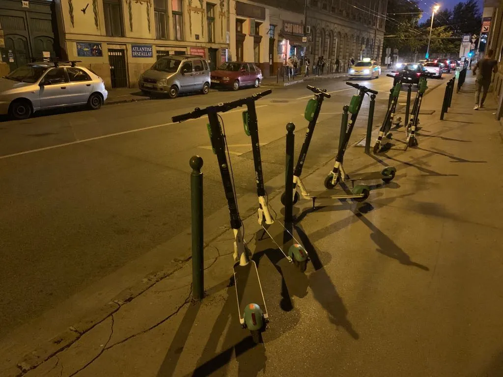 Budapesten a Dohány utca és az Osvát utca sarkán, valamint a Klauzál utcában is feldühíthette a gyalogosokat a rossz helyre leparkolt e-roller
