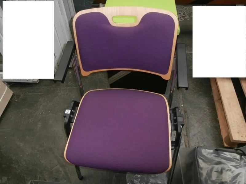 10 ezer Forint a kikiáltási ára ennek a STACATTO típusú, lehajtható karfával, lila égésbiztos szövettel készült moziszéknek.