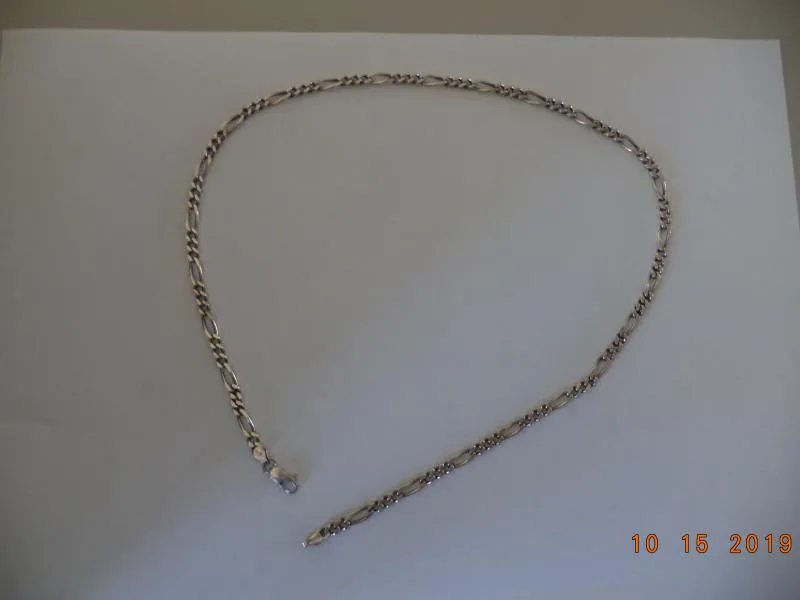 Ez a hivatalos megfogalmazás szerint „Ezüstnek látszó” férfi nyaklánc 20 ezer forint. Hossza 52 cm, súlya 17,79 gramm.