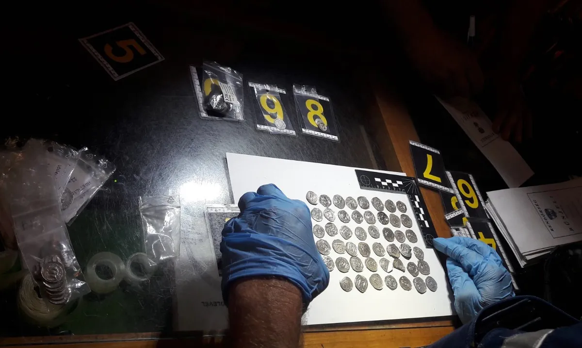 A kutatás során a rendőrök nagy értékű ezüstérméket, készpénzt, valamint világháborús kézifegyverek alkatrészeit foglalták le.