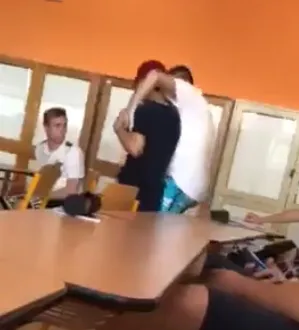 Az aranyosmaróti műszaki szakközépiskolában készült a videó. A tanár kirángatta a padból a fiút és kirakta őt a teremből.