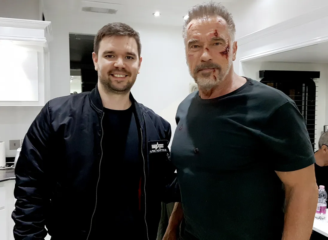 Egy hete jelent meg a mozikban a Terminátor hatodik része. Mezei István és barátja a film Magyarországi forgatásának egyik szünetében látogathatta meg a színészt, aki ki ki is volt sminkelve a mozis jelentekre – így kissé „romos” volt az arca… István ezért is nem mesélhette el korábban a fotóval igazán ütős az óra történetét, mert a film stábja megtiltotta: nem akarták, hogy a sztoriról bármi idő előtt kiszivárogjon – beleértve Arnold kinézetét is a film egyes szakaszaiban.