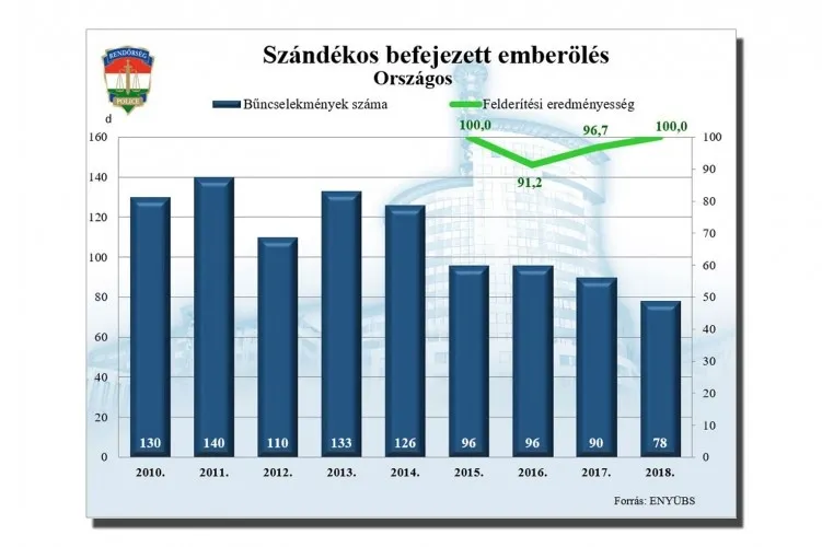 Egyetlen elkövető sem úszhatja meg az emberölést Magyarországon! Ez pedig a gyilkosságok számának csökkenéséhez vezet, legalábbis a statisztikákból ez derül ki. A szakemberek szerint ez a kitartó nyomozási munkán kívül a technika fejlődésének is köszönhető.