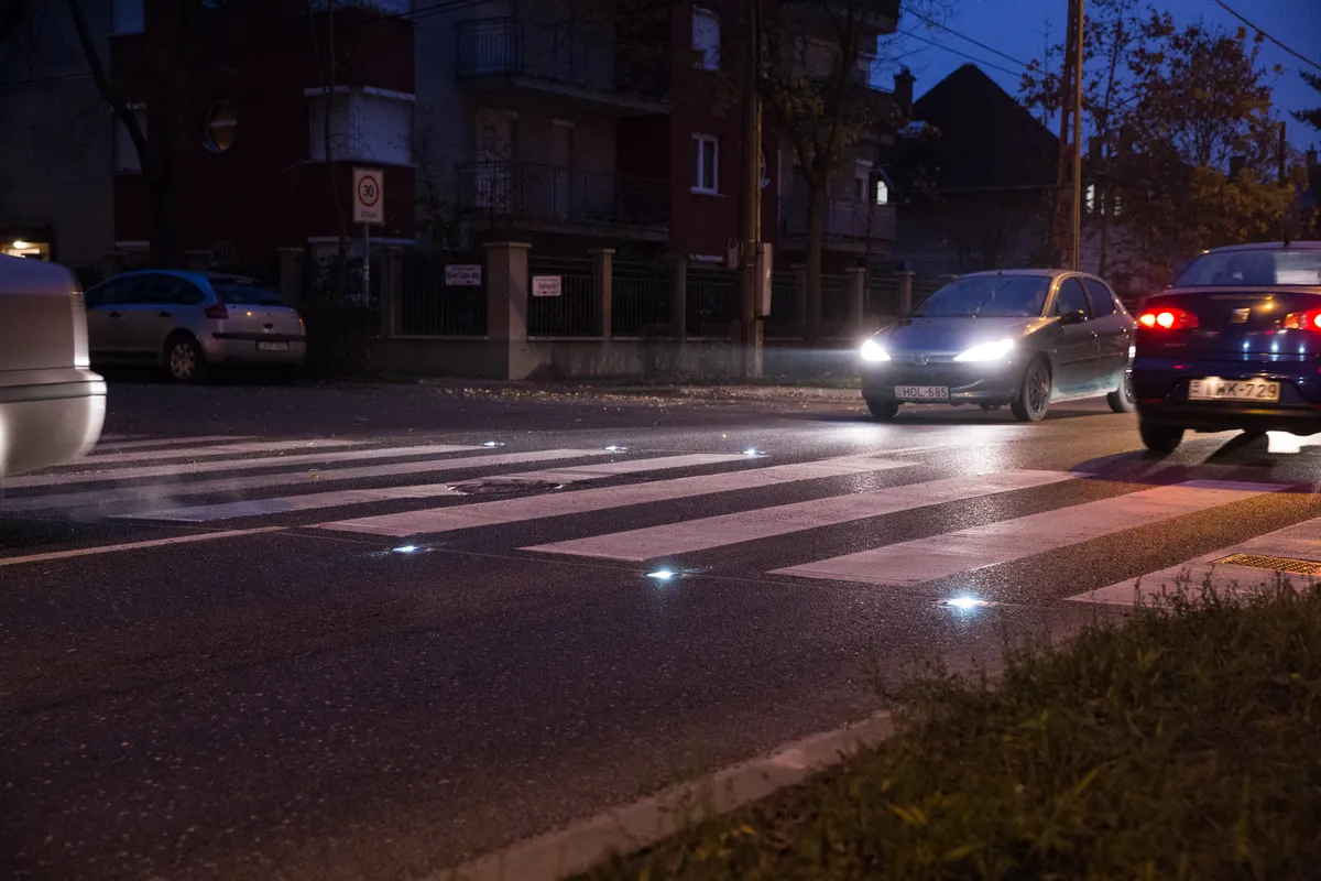 Budapest első okos zebrája Zuglóban épült meg. Ha jön a gyalogos, bekapcsol a LED világítás az átjáró két oldalán, így sötétben is messziről látja a sofőr, hogy valaki átkel az úttesten.