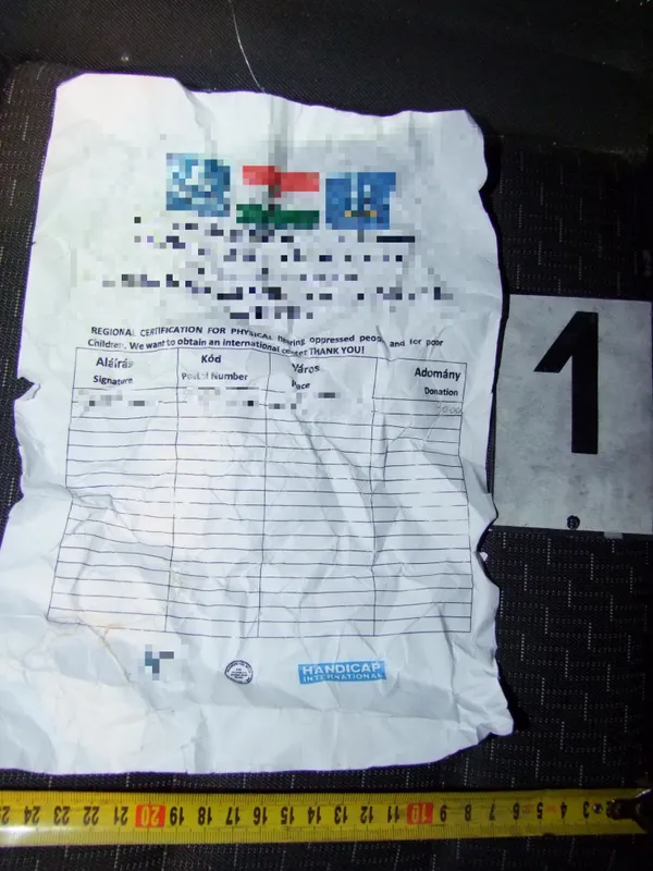 Döbbenet, mit találtak az autóban! Több nyelven írt adománygyűjtő iratokat tartottak maguknál a csalók. Kiderült: nem sokkal korábban egy helyi áruház parkolójában egyikük adománygyűjtésre hivatkozva többekhez odament, és tőlük pénzt kért fogyatékos gyermekek részére.