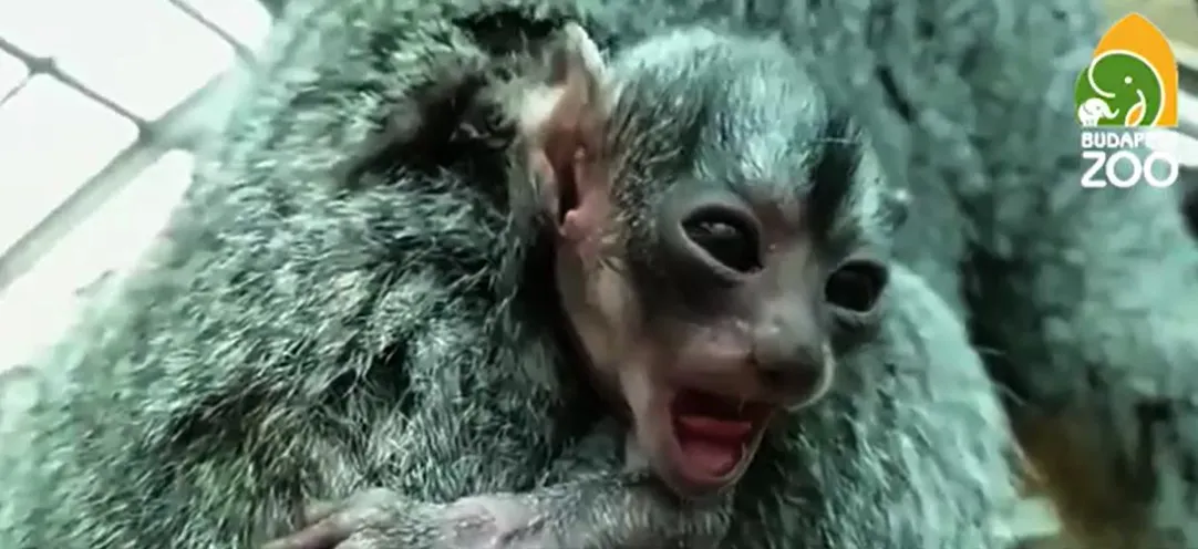 Tágra nyílt szemekkel meredt a világra az Éji majom kölyök