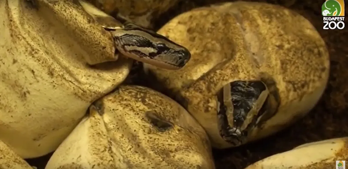 Az állatkert nőstény tigrispitonja a gondozók nagy örömére lerakta tojásait, majd azokból a kiskígyók ki is keltek.