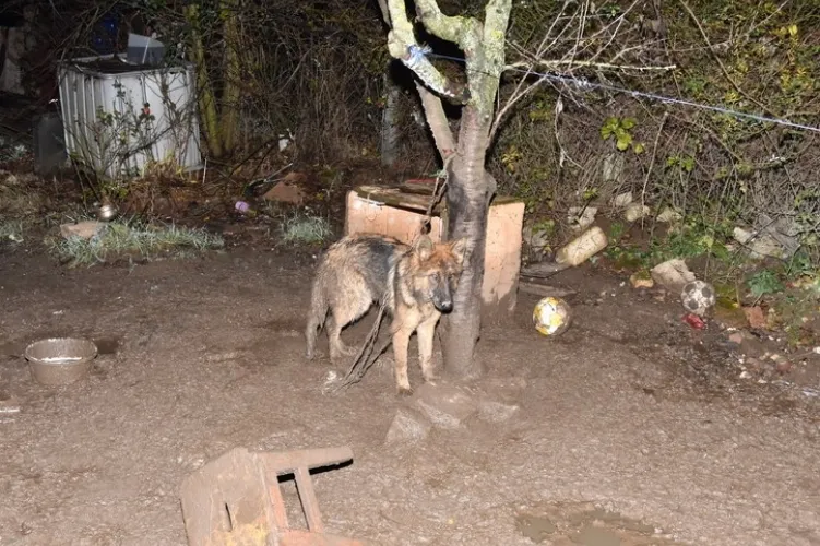 A járőrök azonnal elindultak a helyszínre. Őket is megdöbbentette a kutya látványa: egy lesoványodott sáros, koszos, ázott és láthatóan rossz állapotban lévő német juhász jellegű ebet találtak a címen. Az állat nyakában egy körülbelül másfél méter hosszúságú lánc lógott, ami már benőtt a nyakába – írta a police.hu.